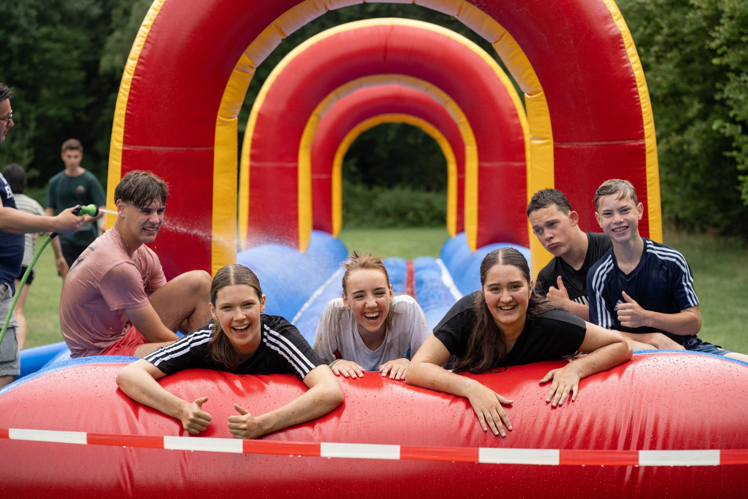 ontvangen. Dit zie je terug in onze activiteiten. We trekken op met vaste groepjes en d.m.v. de energizers, het spontane contact, de groepsspelen en de avondactiviteiten, maar ook tijdens het programma in het plenaire programma, zal je merken dat er veel ruimte is voor fun, spontaniteit, creativiteit, lachen en gezelligheid. Dit zorgt voor de funfactor en bevordert dat de tieners die samen in een groep zitten een team wordt met een gezamenlijk doel.